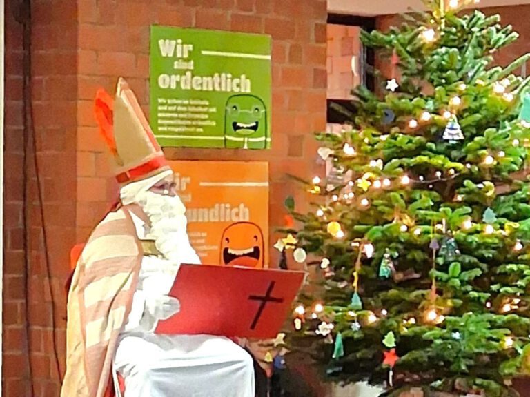 08.12.2025 - Am vergangenen Montag besuchte der heilige Nikolaus die Erst- und Zweitklässer der Pleiserwald-Schule.