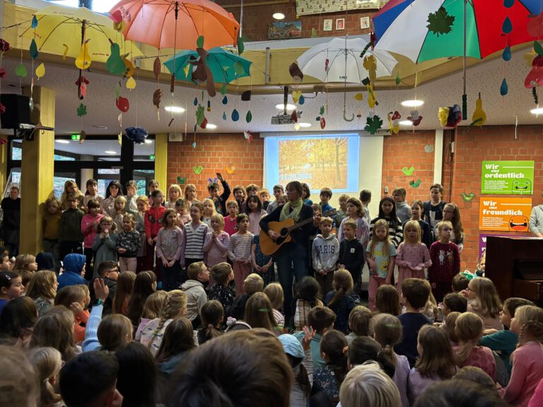 11.10.2024 - Mit einem fröhlichen Liederkreis verabschieden sich die Kinder vom Pleiser Wald in die Herbstferien.