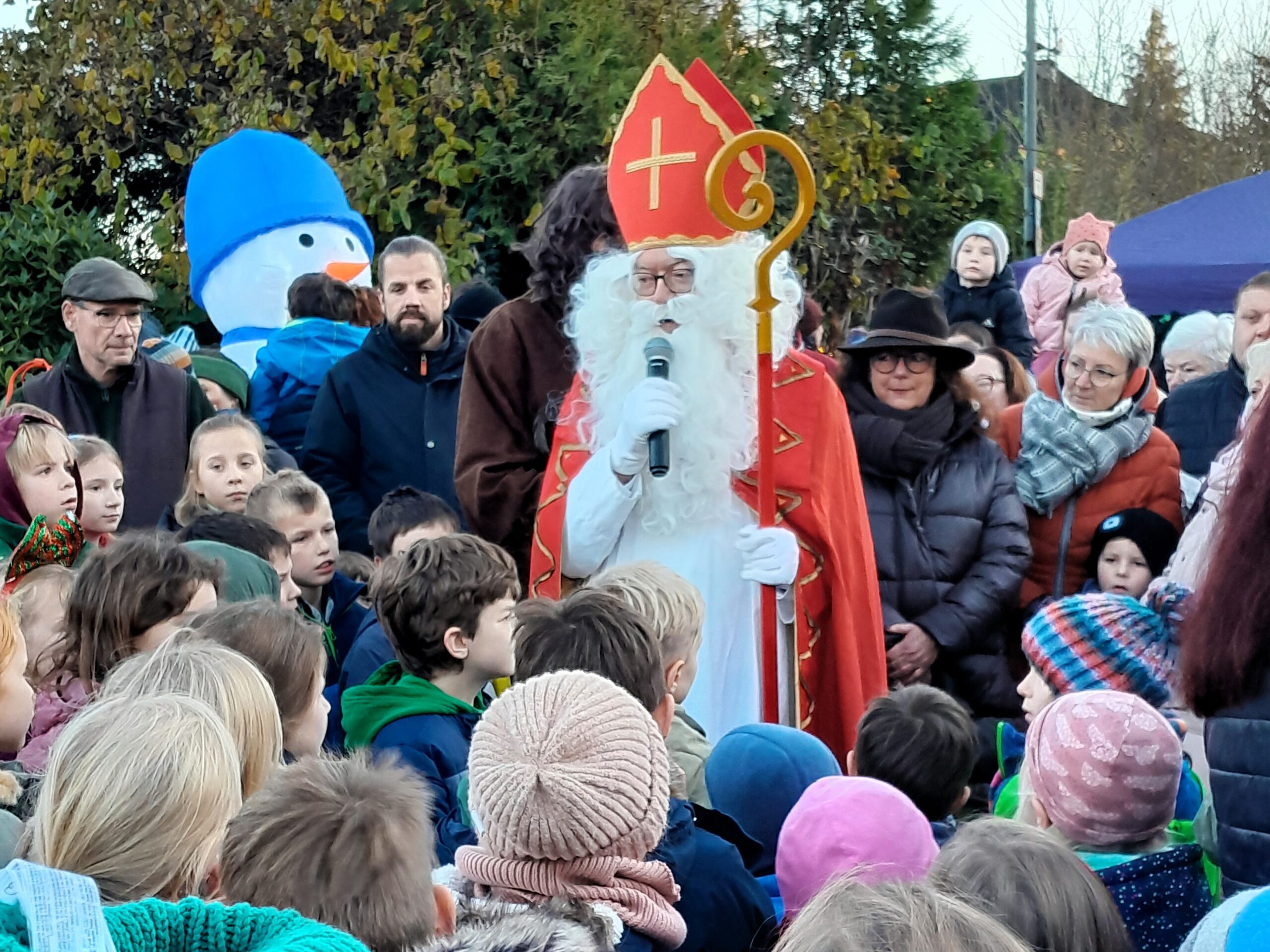 Begeistert von so viel musikalischem Engagement kam sogar der Nikolaus vorbei und öffnete seinen Sack mit vielen kleinen Geschenken für die musikalischen Mädchen und Jungen. Ein herzlicher Applaus und die hartnäckige Forderung nach einer Zugabe belohnten die Kinder zusätzlich. Dann endlich ging es an die festlich geschmückten Verkaufsstände, wo man sich mit Speis und Trank und weihnachtlichen Dekorationen versorgen konnte. Hier hat unter anderem der Förderverein der Grundschule am Pleiser Wald leckere Waffeln, Kakao und Glühwein angeboten. Die ganz Kleinen stürmten das ebenso vom Förderverein betriebene Kinderkarussell und die etwas Größeren erfreuten sich an den Bikern mit ihren festlich beleuchteten Motorrädern.