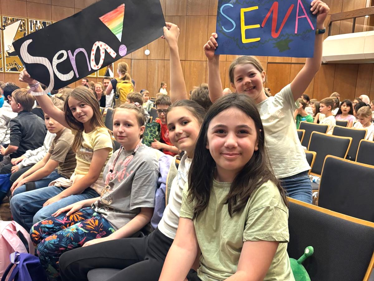 12.05.2025 – Sena aus der Seehunde-Klasse (4c) ist die drittbeste Vorleserin der ganzen Stadt. Mit Bravour meisterte sie am 12. Mai die Herausforderung gegen sechs top Vorleser*innen aus den Sankt Augustiner Grundschulen und landete dort auf dem dritten Platz. Zuvor hatte sie bereits den schulinternen Vorlesewettbewerb gewonnen und durfte nun in die „Kommunal-Liga“ der Vorlese-Kinder aufsteigen.
